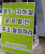 Áö³ 3¿ù 13ÀÏ ¡®Ã¶µµ°ø°ø ÇÒÀÎ Ãà¼Ò öȸ¿Í ºó°ïÃþ ¿ä±ÝÇÒÀÎÁ¦µµ µµÀÔÀ» À§ÇÑ °øµ¿´ëÃ¥À§¿øÈ¸¡¯°¡ ±¤È¹® Á¤ºÎû»ç¾Õ¿¡¼ lÀÎ ½ÃÀ§¸¦ ½ÃÀÛÇØ 8Àϰ¸¦ À̾î¿À°í ÀÖ´Ù. ±×µ¿¾È °ø´ëÀ§´Â öµµ³ëµ¿ÀÚÀÇ Á¤±â´ÜÇùÅõÀïºÎÅÍ ÁÙ °÷ ÇÔ²²ÇØ ¿Ô´Ù.