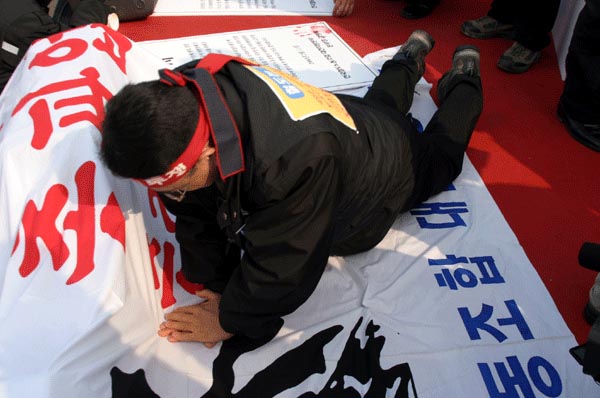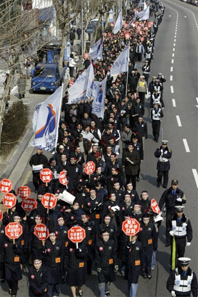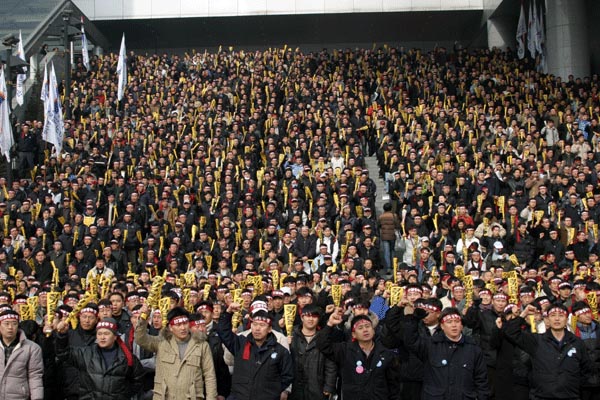 ¼¿ï°ú ºÎ»ê, ¿µÁÖ¿Í ¼øÃµ, ´ëÀü µî Àü±¹ 5°³ Áö¿ª¿¡¼ ÃÑÆÄ¾÷ ½Â¸® °áÀÇ´ëȸ¸¦ ¿¬ öµµ³ëµ¿ÀÚ´Â '¿Â÷¾ÈÀüÀ» Áö۰í öµµ»ó¾÷ȸ¦ ÁߴܽÃ۱â À§ÇØ 3¿ù1ÀÏ ÃÑÆÄ¾÷ µ¹ÀÔ'À» ¸í¹éÈ÷ ¹àÇû´Ù. ¶Ç 'ÀϹæÀûÀ¸·Î ÃßÁøÇÏ´Â ±¸Á¶Á¶Á¤ÀÇ Ã¶È¸¿Í 67¸íÀÇ ÇØ°íÀÚ º¹Á÷, ºñÁ¤±ÔÁ÷ Â÷º° öÆó'¸¦ ¿ä±¸Çß´Ù.