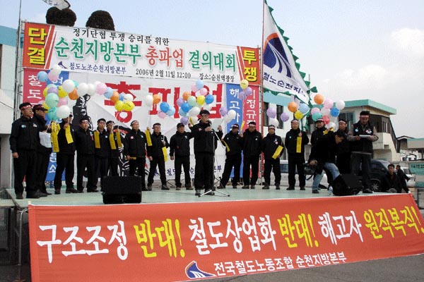À̳¯ Áýȸ¿¡´Â öµµ³ëµ¿ÀÚÀÇ ÆÄ¾÷¿±â¸¦ ´ëº¯Çϵí Àü±¹¿¡¼ 9õ¿© ¸íÀÇ Á¶ÇÕ¿øÀÌ Âü¼®ÇØ ÅõÀïÀÇ ¿±â¸¦ ½Ç°¨ÄÉ Çß´Ù. ƯÈ÷ ¼¿ïÁö¿ª¿¡ ÀïÀÇÇàÀ§ Âù¹ÝÅõÇ¥°¡ ÇÑâÀÎ KTX ¿©½Â¹«¿øµéÀÌ Âü¼®ÇØ 3¿ù1ÀÏ ÃÑÆÄ¾÷ Âü¿©¸¦ ¹àÇô ´«±æÀ» ²ø¾ú´Ù. ¶Ç ºÎ»êÁö¿ª°ú ´ëÀü, ¿µÁÖÁö¿ª Á¶ÇÕ¿øµéÀº Áýȸ¸¦ ¸¶Ä¡°í ½Ã³»ÇàÁøÀ» °¡Á³À¸¸ç ºÎ»êÁö¿ªÁ¶ÇÕ¿øµéÀº »ó¡ÀǽÄÀ¸·Î ÈÇü½ÄÀ» °®±âµµ Çß´Ù.