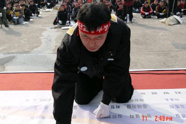 ±è¼ø±â¼øÁöº»Àï´ëÀ§¿øÀåÀº "öµµ³ëµ¿ÀÚµéÀÇ ¿ä±¸´Â ±¹¹Î°ú öµµ¸¦ À§ÇÑ Á¤´çÇÑ ¿ä±¸"ÀÓÀ» °Á¶Çϰí "Á¤ºÎ¿Í öµµ°ø»ç¿¡¼´Â ¿ì¸®ÀÇ ¿ä±¸¸¦ Áï°¢ ¼ö¿ëÇϰí ÇØ°áÇÒ °Í"À» Ã˱¸ÇÏ¿´´Ù. ¶Ç "ÅõÀï½Â¸®¸¦ À§ÇØ 2700¿© ¼øÁöº» µ¿ÁöµéÀÌ Çϳª°°Àº ´Ü°á"À» È£¼ÒÇÏ¿´´Ù. ÀÌ¾î ¹ÎÁÖ³ëÃÑ ±¤ÁÖÀü³²Áö¿ªº»ºÎ ¹Ú»ó¸³º»ºÎÀåÀº "öµµ³ëµ¿ÀÚµéÀÇ Á¤´çÇÑ ÅõÀï¿¡ °ø°ø¿¬¸ÍÀº ÃÑ·ÂÀ» ´ÙÇØ ¿¬´ëÇϰڴÙ"´Â ¿¬´ë»ç¿Í ³ë·¡°ø¿¬´Ü '¸Æ¹Ú'ÀÇ °ø¿¬ÀÌ ÀÖ¾ú´Ù.