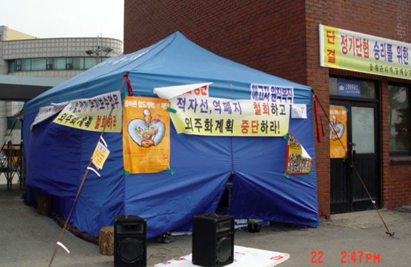 ¶ÇÇÑ ÇöÀå¼øÈ¸ ¸øÁö¾Ê°Ô õ¸·³ó¼ºÀåÀ» ÁÖº¯À¸·Î Áö³ª´Â ½Ã¹Îµé¿¡¼ ¼±Àü¹°À» ³ª´©¾î ÁÖ°í ÀÖ´Ù. öµµÀÇ ÀûÀÚ¹®Á¦°¡ öµµ³ëµ¿ÀÚÀÇ ±¸Á¶Á¶Á¤°ú ÇÑÆíÀ¸·Î´Â ÀûÀÚ¿ª, ÀüÀÚ¼±ÀÇ Æó¼â·Î ±×³ª¸¶ Áö¿ª°æÁ¦ÀÇ ¹öÆÀ¸ñ ¿ªÇÒÀ» Çϰí Àִ öµµ»ê¾÷¸¶Àú µ¿ÇØÁö¿ª¿¡¼ ¿Ü¸é´çÇÏÁö ¾Êµµ·Ï öµµ³ëµ¿ÀÚ°¡ ¾ÕÀå¼ ÅõÀïÇϰí ÀÖÀ¸´Ï °ü½ÉÀ» °¡Á® ´Þ¶ó¸é ¼±ÀüÀüÀ» ÁøÇàÇϰí ÀÖ´Ù.