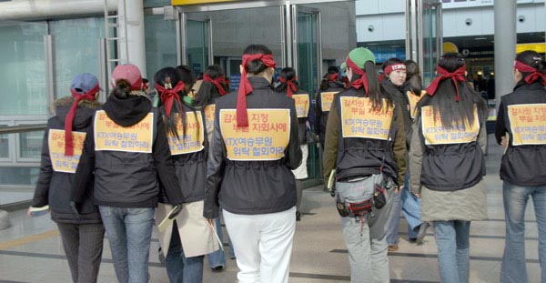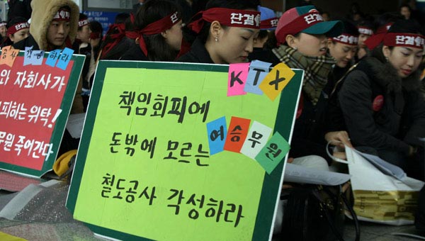 Àü±¹Ã¶µµ³ëµ¿Á¶ÇÕÀº 2006³â 2¿ù 25ÀÏ ¾ÆÄ§ 06:00ºÎÅÍ ½ÃÇàµÈ KTX ½Â¹«¿ø Àü¿ø¿¡ ´ëÇÑ ½Â¹«ÁßÁö Á¶Ä¡¿¡ ´ëÇÏ¿© °·ÂÈ÷ Ç×ÀÇÇϸç Áï½Ã À̰°Àº Á¶Ä¡¸¦ ÇØÁ¦ÇÒ °ÍÀ» ¿ä±¸ÇÑ´Ù.