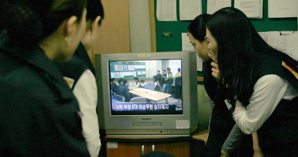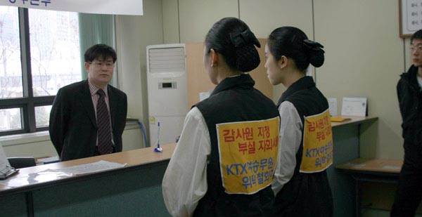 ³ëµ¿Á¶ÇÕÀÇ »çº¹±Ù¹« ÁöħÀ» ÁöŰ·Á´Â KTX ½Â¹«¿øµéÀÇ ÅõÀïÀÌ ¿Ï°ÇÏ°Ô ÁøÇàµÇ°í ÀÖ´Ù. 2¿ù 25ÀÏ ¿ÀÀü 6½Ã 40ºÐ ¹ßÂ÷ÇÑ Á¦ 113¿Â÷ºÎÅÍ ¿ÀÈÄ 1½Ã 30ºÐ ÇöÀç Àü ¿Â÷°¡ KTX ½Â¹«¿ø¾øÀÌ ÆÄÇà ¿îÇàµÇ°í ÀÖ´Ù. °ø»çÀÇ Áö½Ã¿Í À¯ÅëÃøÀÇ ¹«¸®ÇÑ »çº¹ÅõÀï ±ÝÁö¹æÄ§¿¡ µû¶ó 2¿ù 25ÀÏ Ã¹ Ãâ±ÙÇÑ ½Â¹«¿øºÎÅÍ Àü¿ø¿¡°Ô ½Â¹«ÁßÁö ź¾ÐÀÌ ÀÚÇàµÇ°í ÀÖ´Â °ÍÀÌ´Ù. öµµÀ¯Åë ½Â¹«º»ºÎ °ü¸®ÀÚµéÀº Ã⹫Àλ縦 ÇÏ´Â ½Â¹«¿øµé¿¡°Ô ¡°»çº¹±Ù¹«´Â Çã¿ëÇÒ ¼ö ¾ø´Ù. ±Ù¹«º¹À¸·Î °¥¾ÆÀÔ°í ¹îÁö, µîº®º¸µîÀ» ¶¼Áö ¾ÊÀ¸¸é °á±Ù ó¸®ÇÑ´Ù.¡±°í ÀϹæÀûÀ¸·Î Å뺸Çϰí ÀÖ´Ù. ¶ÇÇÑ ¹«Àü±â,PDAµî ½Â¹«¿ë ÀåºñÁö±ÞÀ» °ÅºÎÇϰí ÀÖ´Ù. ½ÉÁö¾î ¼¿ï¿ª°ú ¿ë»ê¿ª¿¡ À¯Åë°ü¸®ÀÚµéÀÌ ¹èÄ¡µÇ¾î »çº¹±Ù¹«ÁßÀÎ ½Â¹«¿øµéÀ» ²ø¾î ³»¸®¶ó´Â Áö½Ã±îÁö ÀÖ¾ú´ø °ÍÀ¸·Î ¹àÇôÁ³´Ù. ½Â¹«¿øµéÀÌ ¡°³ëÁ¶Åº¾ÐÀÌ´Ù. ´Ù¸¥ Á¶ÇÕ¿øµéµµ ¸ðµÎ »çº¹±Ù¹«¸¦ Çϰí Àִµ¥ À¯µ¶ KTX ½Â¹«¿ø¿¡°Ô¸¸ ½Â¹«ÁßÁö ź¾ÐÀ» ÇÏ´Â ÀÌÀ¯°¡ ¹«¾ùÀ̳Ä?¡±°í µûÁ³À¸³ª ¡°»óºÎÁö½Ã´Ù.¡±´Â ¸»¸¸ ¾Þ¹«»õó·³ µÇÇ®ÀÌÇϰí ÀÖ´Ù.