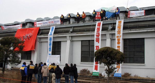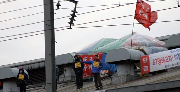 ½Â¹«Á¤Áö¸¦ ´çÇÏ¿© ÅõÀïÁßÀÎKTX ¿©½Â¹«¿ø µ¿Áöµéµµ ¼¿ï¿ª¿¡¼ Áýȸ ÈÄ Â«À» ³»¾î ã¾Æ¿Ô´Ù. KTX ¿©½Â¹«¿ø µ¿ÁöµéÀº ¡°¿ì¸®´Â »çº¹ÅõÀïÀ» ÇÏ´Ù ½Â¹«Á¤Áö¸¦ ´çÇÏ¿´´Ù¡±¸é¼ ¡°Ã¶ÇØÅõ µ¿ÁöµéÀÇ ÅõÀïÇÏ´Â ¸ð½ÀÀ» ¸¹ÀÌ ¹è¿î´Ù¡± °í ÇÏ¿´´Ù. ¿©½Â¹«¿øµéÀº ¡°³¯¾¾°¡ Ãß¿öÁö´Âµ¥ °¨±âÁ¶½ÉÇÏ°í °Ç°À» ì°Ü ưưÇÑ ¸öÀ¸·Î ÇöÀåÀ¸·Î µ¹¾Æ°¥ ¼ö ÀÖµµ·Ï ÇÏ¶ó¡± °í Çß´Ù.
