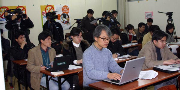 ¹ÎÁÖ³ëÃÑ ±âÀÚȸ°ßÀå¿¡¼ °³ÃÖµÈ ±âÀÚȸ°ßÀå¿¡¼± 50¿© ¾ð·Ð»çµéÀÌ ¸ð¿©µé¾î ÃëÀ縦 ÇÏ¿´´Ù.