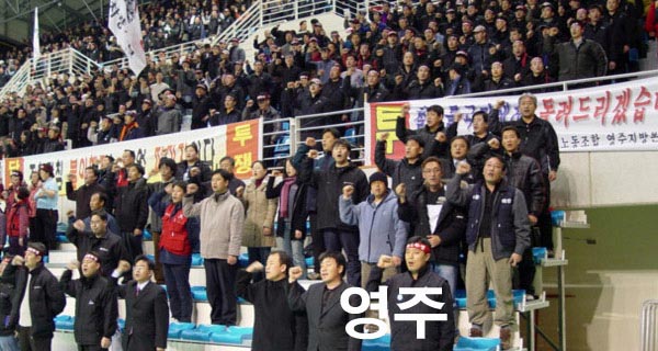 Àü¾ßÁ¦ÀÇ ¿¶í ÈïºÐÀÌ °¡¶ó¾ÉÀº Áö±Ý, Àü±¹5°³ ÃÑÆÄ¾÷ ÇöÀåÀº ¼Ó¼Ó ¸ð¿©µç Á¶ÇÕ¿øÀÇ ¹°°á·Î ÀλêÀÎÇØ¸¦ ÀÌ·ç°í ÀÖ´Ù. ¼¿ï À̹®Â÷·®±âÁö¿¡¸¸ 7õ5¹é¿© Á¶ÇÕ¿øÀÌ Áý°áÇØ ÃÑÆÄ¾÷À» ÁøÇà ÁßÀÌ´Ù. ¶Ç ºÎ»ê µ¿¾Æ´ë¿£ 3300¸íÀÇ Á¶ÇÕ¿øÀÌ ¿òÁý Çß´Ù. ¶Ç ´ëÀü¿£ 2200¸í, ¿µÁÖ 2300¸í, ¼øÃµ 12000¸íÀÌ ÃÑÆÄ¾÷À» ±»°ÇÈ÷ »ç¼öÇϰí ÀÖ´Ù.