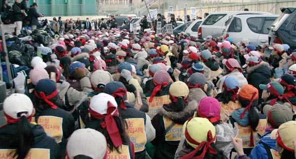 ÁýȸÁß°£¿¡ »çȸÀÚ°¡ °è¾àÁ÷À» ÀÌÀ¯·Î ÆÄ¾÷¿¡ Âü°¡ÇÑ ºñÁ¤±ÔÁ÷ ³ëµ¿ÀÚÀÎ »õ¸¶À» È£ ¿©½Â¹«¿ø°ú ¿î¼ö, ½Ã¼³, Â÷·® µîÀÇ µ¿ÁöµéÀÌ °è¾àÇØÁö µÇ¾úÁö¸¸ öµµ°ø»ç°¡ ¿À´Ã °è¾àÇØÁö¸¦ öȸÇß´Ù°í ¸»ÇÏÀÚ ¿ì·¹¿Í °°Àº ¹Ú¼ö°¡ ÅÍÁ® ³ª¿À±âµµ Çß´Ù.