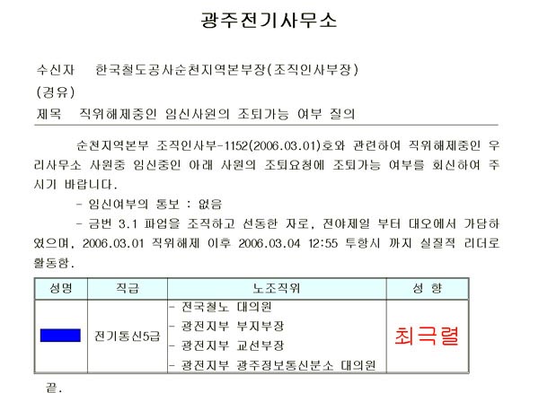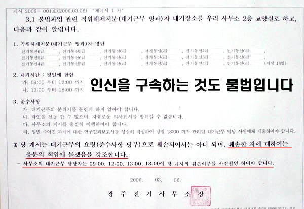 <¼º¸í¼>±¤ÁÖÀü±â»ç¹«¼ÒÀÇ ÀαÇÀ¯¸°À» °í¹ßÇÑ´Ù.