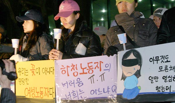 3¿ù 1ÀϺÎÅÍ ÆÄ¾÷À» ¹ú¿©¿À´ø KTX ¿©½Â¹«¿ø 350¿© ¸íÀÌ 3¿ù 9ÀÏ¿¡ Çѱ¹Ã¶µµ°ø»ç ¼¿ïÁö¿ªº»ºÎ »ç¹«½ÇÀÇ Á¡°Å³ó¼º¿¡ µé¾î°¬´Ù. KTX ¿©½Â¹«¿øµéÀº Çѱ¹Ã¶µµ°ø»ç°¡ ¿îÇàÇÏ´Â KTX ¿Â÷ ³»¿¡¼ °í°´¼ºñ½º¿Í °í°´¾ÈÀüÀ̶ó´Â ÇʼöÀûÀÎ ¾÷¹«¸¦ ´ã´çÇϰí ÀÖÀ½¿¡µµ, Çѱ¹Ã¶µµ°ø»ç´Â À̵éÀ» Á÷Á¢°í¿ëÇÏÁö ¾Ê°í ÀÚȸ»çÀÎ (ÁÖ)Çѱ¹Ã¶µµÀ¯Åë°ú ¾÷¹«À§Å¹°è¾àÀ» ü°áÇÏ¿©, °í¿ëÀº (ÁÖ)Çѱ¹Ã¶µµÀ¯ÅëÀÌ ÇÏ°í »ç¿ëÀº Çѱ¹Ã¶µµ°ø»ç°¡ ÇÏ´Â ¹æ½ÄÀ¸·Î KTX ¿©½Â¹«¿øµéÀ» ÀÏÀ» ½ÃÄ×´Ù. °Ô´Ù°¡ (ÁÖ)Çѱ¹Ã¶µµÀ¯ÅëÀº 1³â ´ÜÀ§ÀÇ °è¾àÁ÷À¸·Î À̵éÀ» ä¿ëÇÔÀ¸·Î½á KTX ¿©½Â¹«¿øµéÀº °£Á¢°í¿ë°ú °è¾àÁ÷À̶ó´Â ÀÌÁßÀÇ ºñÁ¤±Ô ±Ù·ÎÀÚ¶ó´Â ¿¾ÇÇÑ ±Ù¹«Á¶°Ç ¼Ó¿¡¼ ÀÏÀ» ÇÏ¿© ¿Ô´Ù.