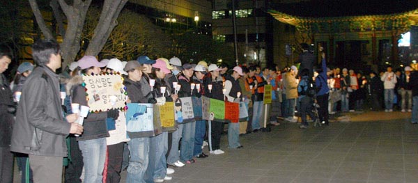 ¿µÈÆò·Ð°¡ ¾çÀ±¸ð¾¾´Â ¸¶ÀÌÅ©¸¦ Àâ°í ¡°<¾Ç¾î> À¯µ¿¹Î °¨µ¶ÀÇ 1ÀÎ ½ÃÀ§¸¦ °Ý·ÁÇÏ·¯ ¿Ô´Ù¡±¸é¼ ¡®Àý±ÔÇÏ´Â ½ÉÁ¤À¸·Î ¸¶ÀÌÅ©¸¦ Àâ¾Ò´Ù¡¯°í ¹àÇû´Ù. ±×´Â Çѱ¹ÀÇ È¥À» ÆÈ°í ¹®È¸¦ ÆÈ¾Æ¸Ô´Â ³ë¹«Çö Á¤ºÎ¸¦ ¼ºÅäÇß´Ù. ¡°¿µÈÀεéÀº ¿µÈ¸¦ ¸¸µé¾î ¼öÃâµµ Çϰí Çѱ¹ÀÇ ¾Æ¸§´Ù¿î ¹®È¸¦ ¿Ü±¹¿¡ ¾Ë¸®´Âµ¥ Á¤ºÎ°¡ ÇÏ´Â ÀÏÀ̶ó°ï 10¸¸°³ÀÇ ÀÏÀÚ¸®¸¦ ¸¸µç´Ù¸é¼ ºñÁ¤±ÔÁ÷À» ¾ç»êÇÏ´Â °Í »Ó¡±À̶ó¸é¼ ¡°À̰ÍÀº 5%ÀÇ ±âµæ±ÇÀÚ°¡ 95%¸¦ Áã¾îÂ¥±â À§ÇÑ °Í¡±À̶ó°í ¼ºÅäÇÏ¿´´Ù.