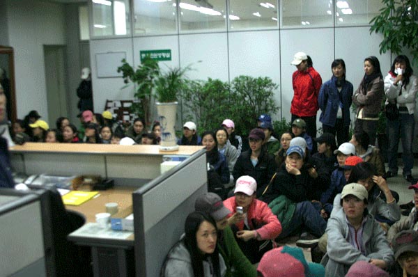 ¿©½Â¹«¿ø 1¹é¿© ¸íÀº ¼¿ï¿ª °ü¸®ÀÚÀÇ ¹ß±¤¿¡ °¡±î¿î Çൿ¿¡ »ç°ú¸¦ ¹Þ°í ¼¿ï°ø¾ÈºÐ¼Ò ³ó¼º¿¡ µé¾î°¬´Ù. ¿©½Â¹«¿øµéÀº °ü·ÃÀÚÀÇ »ç°ú¸¦ ¿ä±¸Çß´Ù.