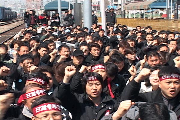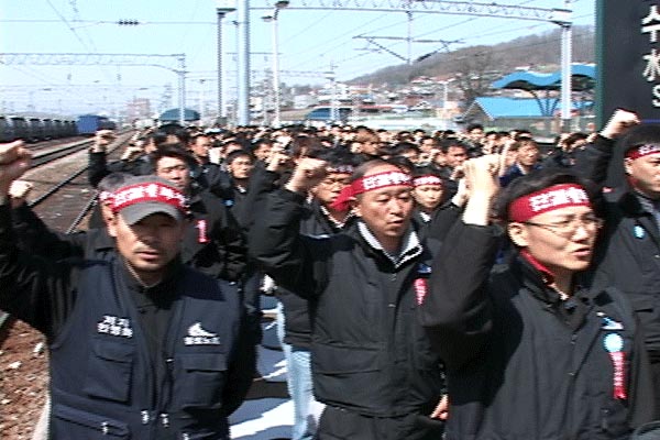 ÇÑÆí À̳¯ Áýȸ¿¡¼´Â ¿î¼öÁ¶ÇÕ¿øµéÀÌ ¼ö·Ãȸ¸¦ ³¡³»°í Âü¿©ÇØ °øµ¿ÅõÀïÀÇ ÀÇÁö¸¦ ´ÙÁ³´Ù. ¶Ç 23ÀÏÂ÷ ÆÄ¾÷ÅõÀïÀ» ÁøÇàÁßÀÎ KTX ¿Â÷½Â¹« µ¿Áöµéµµ Âü¼®ÇØ ºÐÀ§±â¸¦ µå ³ô¿´´Ù.
