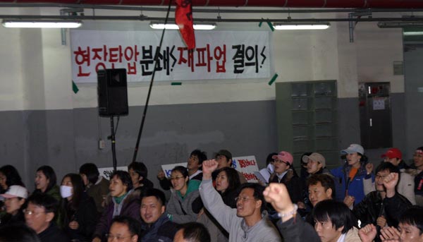 ÀÛ¾÷°ÅºÎ ÅõÀïÀ» ¹úÀ̰í ÀÖ´Â ¼ö»öÁö±¸ Á¶ÇÕ¿øµéÀÌ ¼¿ïÂ÷·®¿¡¼ ¹®ÈÁ¦¸¦ °³ÃÖÇÏ¿´´Ù.