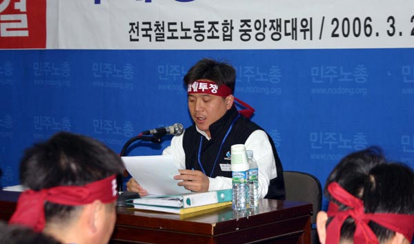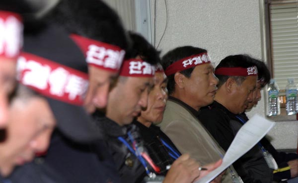 »óȲÀ» º¹±ÍÇØ º¾½Ã´Ù. ¿ì¸®´Â °í¼Óöµµ °³Åë°ú öµµ°ø»ç Ãâ¹üÀ̶ó´Â Å« º¯ÈÀÇ Á¶°Ç ¼Ó¿¡¼ 2003³â 4.20 Á¤±â´ÜüÇù¾à°ú 2004³â 12.3 Ưº°´ÜüÇù¾àÀ̶ó´Â µÎ °³ÀÇ ´ÜÇùÀ» °¡Áö°Ô µÇ¾úÁö¿ä. ¿ì¸® öµµÀεéÀÇ ÀÇÁö¿Í ¹«°üÇÏ°Ô ÁøÇàµÈ °ø»çȰ¡ ÇÑ »ç¾÷Àå¿¡¼ µÎ °³ÀÇ ´ÜÇùÀÌ Á¸ÀçÇÏ´Â »óȲÀ» ¸¸µç °ÍÀÔ´Ï´Ù. ±×·±µ¥ ÀÌ·¯ÇÑ »óȲÀÌ °è¼ÓµÈ´Ù´Â °ÍÀº öµµÇöÀå¿¡ ´ë´ÜÈ÷ ºÒ¾ÈÁ¤ÇÑ »óŰ¡ °è¼ÓµÇ´Â °ÍÀÓÀ¸·Î ¿ì¸®´Â ÀÌ µÎ °³ÀÇ ´ÜÇùÀ» ÇϳªÀÇ ´ÜÇùÀ¸·Î ÇÕº»ÇÏ´Â ±³¼·À» °ø»çÃø°ú 6°³¿ù ÀÌ»ó ÁøÇà½ÃÄѿԴø °ÍÀÔ´Ï´Ù. À̰ÍÀº ´ÜÁö ¿ì¸® ³ëµ¿Á¶ÇÕÀÇ ¿ä±¸¸¸ÀÌ ¾Æ´Ï¶ó °ø»çÃø¿¡¼µµ ±× Çʿ伺ÀÌ ´õ Å« °ÍÀÏ ¼ö ÀÖ½À´Ï´Ù. ÇÏÁö¸¸ ºÒÇàÇϰԵµ ³ë»ç°£ÀÇ ÀǰßÀÏÄ¡¸¦ º¸Áö ¸øÇÑ »óȲ¿¡¼ ÆÄ¾÷¿¡ µ¹ÀÔÇÏ°Ô µÇ¾ú°í Á¤ºÎ´Â Áß³ëÀ§¸¦ ÅëÇÑ ¡®Á÷±Ç¡¯ÁßÀç·Î ¿ì¸®ÀÇ ÅõÀïÀ» ºÒ¹ýÈÇÏ°í »ó»óÀ» ÃÊ¿ùÇÑ À§¹ýºÒ¹ýÇÑ Åº¾ÐÀ¸·Î ÆÄ¾÷´ë¿À¸¦ ¹«·ÂÈÇϴµ¥¸¸ Ç÷¾ÈÀÌ µÇ¾ú½À´Ï´Ù. ±×¸®°í Á¤ºÎ´Â ÀÔ¸¸ ¿¸é ¡®¼±º¹±Í Èı³¼·¡¯À̶ó°í ¡®Âî¶ó½Ã¡¯¸¦ µ¿¿øÇÏ¿© ¿©·ÐÀ» È£µµÇÏ¿´Áö¿ä. ¿ì¸®´Â ÇÇ´«¹°À» ¸Ó±Ý°í ÆÄ¾÷ÅõÀïÀÇ ºÒ¹ý¼º ¿©ºÎ´Â °è¼Ó ½Î¿ö³ª°£´Ù ÇÏ´õ¶óµµ ¿Â÷¾ÈÀüÀÇ ÃÖÈÄÀÇ º¸·ç·Î¼ ÆÄ¾÷ÀÌ Àå±â鵃 °æ¿ì ¾ÈÀü¿¡ ´ëÇÑ ¹®Á¦¿Í ÀÌ·Î ÀÎÇØ ¹®Á¦ÀÇ º»ÁúÀÌ ¿Ö°îµÇ´Â °ÍÀ» ¿ì·ÁÇÏ¿© ¾Æ¹«·± Á¶°Ç ¾øÀÌ º¹±Í¸¦ Çϰí ÇöÀåÅõÀïÀ¸·Î ÀüȯÇÏ¿© ¿À´Ã¿¡ À̸£°í ÀÖ½À´Ï´Ù.