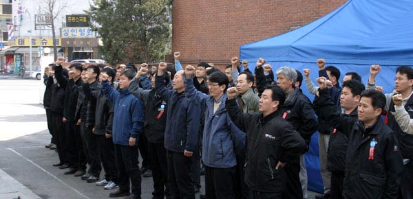 ¿ÀÀü 11½Ã º»Á¶ÇÕ ¾Õ¸¶´ç¿¡ ¸ðÀÎ 80¿©¸íÀÇ °£ºÎµé°ú Á¶ÇÕ¿øµéÀº 3.1 ÃÑÆÄ¾÷À» »ç¼öÇϰí ÃâµÎÇÏ´Â ÁöµµºÎµ¿Áöµé°ú ÇÔ²²Çß´Ù.