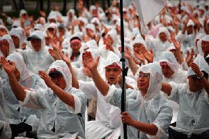´ÙÀ½À¸·Î ³ëµ¿°¡¼ö Áö¹ÎÁÖÀÇ ¹®È°ø¿¬ÀÌ À̾îÁ³´Ù. ºø¹æ¿ïÀÌ ½ñ¾ÆÁö°í ¿ìºñ¸¦ ÀÔ¾úÁö¸¸ "´ÄÀº ³ëµ¿ÀÚÀÇ ³ë·¡"°¡ ¿Ã¢µÇÀÚ ´ëȸ¿¡ Âü°¡ÇÑ Â÷·®Á¶ÇÕ¿øµéÀÌ ¹Ú¼ö¸¦ Ä¡°í ÆÈÀ» Èçµé¸ç Áýȸ ºÐÀ§±â´Â ´õ¿í °íÁ¶µÇ¾î°¬´Ù.