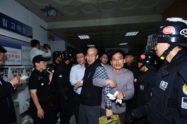 ÇÑÆí KTX Á¶ÇÕ¿øµéÀº Áö³ 12ÀϺÎÅÍ ¹ã»õ °±Ý½Ç ¿¸° ¿ì¸®´ç ¼±º»¿¡¼ °æÃ¶º´·Â°ú ´ëÄ¡Çß´Ù. Á¶ÇÕ¿øµéÀº "°ø±Ç·ÂÀÌ ÅõÀԵǾúÁö¸¸ ÅõÀïÀ» °è¼ÓµÉ °Í"À̶ó ¹àÈ÷°í "°ø¿ø·ÂÀ¸·Î ÅõÀïÀ» ¸·Áö´Â ¸øÇÒ °Í"ÀÌ¶ó °æ°íÇß´Ù.