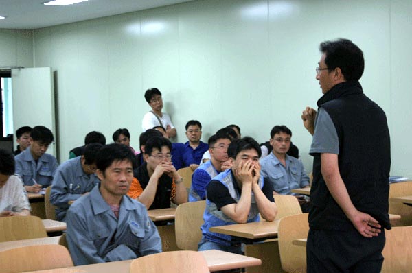 À̾î Á¶ÇÕ¿øµéÀÇ Áú¹®À» ¹Þ¾Ò´Ù. Á¶ÇÕ¿øµéÀº óÀ½Çغ¸´Â Àӱݱ³¼·¿¡ ¸¹Àº °ü½ÉÀ» º¸¿´´Ù. ƯÈ÷ ¼º°ú±Þ ±ÕµîºÐ¹è¿Í °í¿ë¹®Á¦, ÇØ°íÀÚ º¹Á÷¿¡ ´ëÇØ¼µµ Áú¹®ÀÌ À̾îÁ³´Ù.