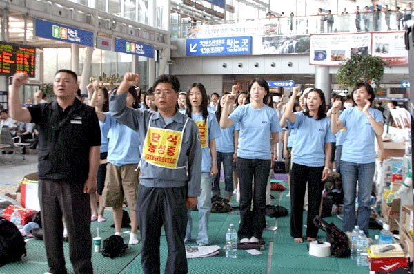 ÇÑÆí Áö³ ´Þ 15ÀϺÎÅÍ ¼¿ï¿ª ³ó¼ºÀ» ÁøÇàÁßÀÎ KTX µ¿ÁöµéÀº 24ÀÏ Á¤ÇýÀÎ, Á¤Áö¼±ÀÇ ÁöµµºÎ ´Ü½ÄÀ» ½ÃÀÛÀ¸·Î 29ÀÏ¿¡´Â Á¶ÇÕ¿ø 8¸íÀÌ ÇÕ·ùÇØ ´Ü½Ä ÅõÀïÀ» °è¼ÓÇϰí ÀÖ´Ù.