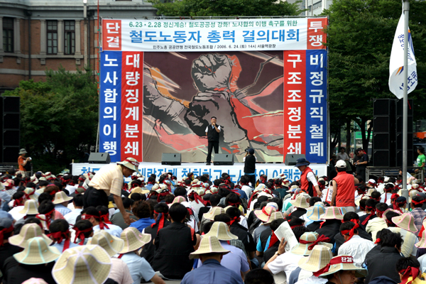 ¾Æ½ºÆÈÆ®¸¦ ³ìÀÌ´Â ´õÀ§ ¼Ó¿¡ ÁøÇàµÈ ´ëȸ´Â öµµ³ëµ¿ÀÚµéÀÇ ºÐ³ë¿Í ¿±â·Î °¡µæ á´Ù. À̳¯Àº 94³â ¾î¿ëö³ë ÇÏ¿¡¼ öµµ³ëµ¿ÀÚµéÀÌ ³ëµ¿Á¶°Ç °³¼±À» À§ÇÏ¿© 6•23ÆÄ¾÷ÅõÀïÀ» ±â³äÇß´Ù.