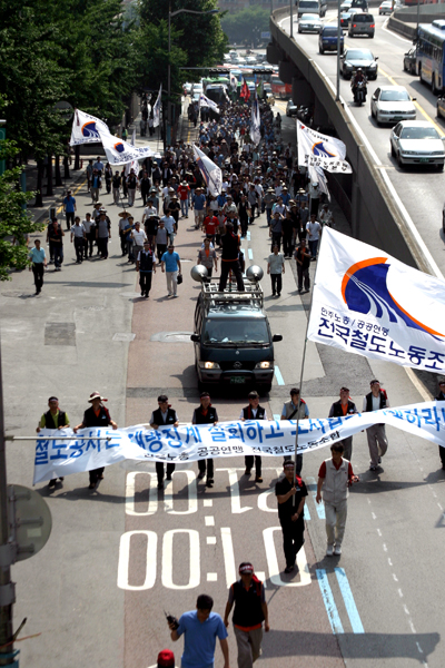 ´ëȸ ÀüºÎÅÍ »ï»ï¿À¿À ¸ð¿©µé±â ½ÃÀÛÇÑ Á¶ÇÕ¿øµéÀº °¢ ÁöºÎÀÇ ±ê¹ß¾Æ·¡ ¸ðÀ̱⠽ÃÀÛÇÏ¸é¼ ¼¿ï¿ªÀÌ Ã¶µµ³ëµ¿ÀÚÀÇ ±¤ÀåÀ¸·Î º¯ÇÏÀÚ KTX ¿Â÷½Â¹«ÁöºÎ µ¿ÁöÀÇ ÅõÀï»ç°¡ ½ÃÀ۵Ǿú´Ù.