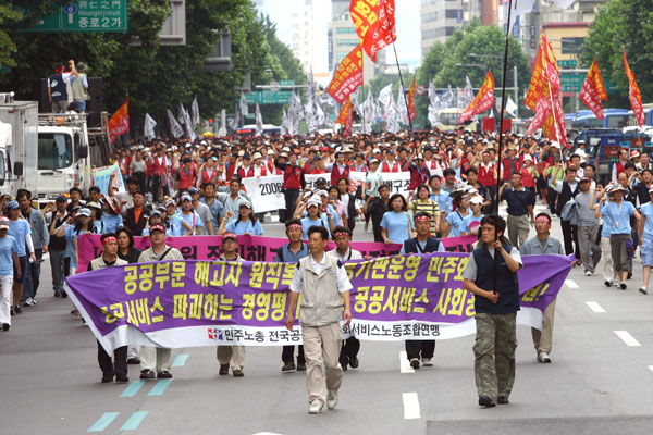 °ø°ø¿¬¸Í(À§¿øÀå ¾ç°æ±Ô)Àº 11ÀÏ ¿ÀÈÄ4½Ã ±¤È¹®¿¡¼ »çȸ°ø°ø¼º°È! ¹Î°£À§Å¹ ºÐ¼â! Áö¹è±¸Á¶ ¹ÎÁÖÈ! ÇѹÌFTA ÀúÁö!ÀÇ ¿ä±¸¸¦ °É°í 7000¿©¸íÀÇ Á¶ÇÕ¿øÀÌ ¿îÁýÇÑ °¡¿îµ¥ 7¿ù ÃÑÆÄ¾÷ÀÇ ±ê¹ßÀ» ¿Ã·È´Ù.