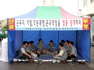 ÀÌ¿¡ "¿µÁÖÁö¿ª°ü¸®¿ªÁöºÎ¿Í ¿µÁÖÁö¹æº»ºÎ´Â ¾öÁßÇÑ Áß¡°è¸¦ ¿ä±¸Çϸç õ¸·³ó¼º¿¡ µ¹ÀÔÇÑ´Ù."°í ¹àÈ÷°í "Àü±¹Ã¶µµ³ëµ¿Á¶ÇÕ Á¶ÇÕ¿øÀÌ ³³µæÇÒ¼ö ÀÖ´Â Áß¡°è°¡ ÀÌ·ç¾îÁöÁö ¾ÊÀ» ½Ã¿¡´Â °¡´ÉÇÑ ¸ðµç ¹æ¾ÈÀ» °±¸ÇÏ¿© °·ÂÈ÷ ´ëóÇÒ °ÍÀÓÀ» ¹àÈ÷¸ç ±× Ã¥ÀÓÀº öµµ°ø»ç¿¡ ÀÖÀ½À» ºÐ¸íÈ÷ ÇÑ´Ù."°í õ¸íÇÏ¿´´Ù.