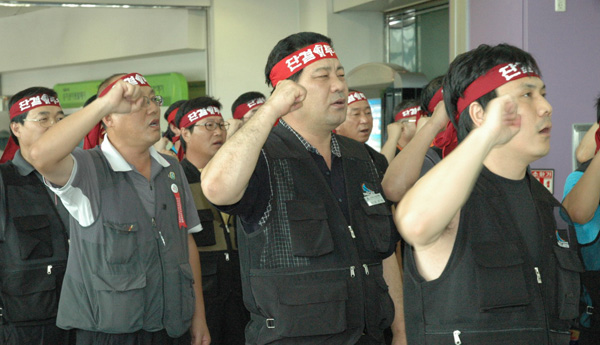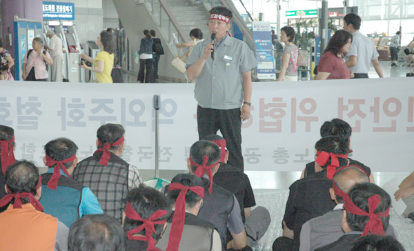 ¿î¼öÁöºÎÀåµéÀº Áö³ 2006³â 8¿ù 7ÀϺÎÅÍ µ¿´ë±¸¿ª¿¡¼ ³ó¼º¿¡ µ¹ÀÔÇÏ¿´´Ù. ¿î¼öÁöºÎÀåµéÀº ÀÌö »çÀåÀÇ ³¡¾ø´Â ±¸Á¶Á¶Á¤ ¿ä±¸°¡ öµµ³ëµ¿ÀÚ¸¦ ö±æ ¹ÛÀ¸·Î ¹Ð¾î³»°í ÀÖ´Ù´Â °ÍÀÌ´Ù. ±¹¹ÎÀ» ¾ÈÀü±îÁö »ç°¢Áö´ë·Î ¸ô¾Æ°¡°í Àֱ⿡ ´õ ÀÌ»ó ¹Ð¸± ¼ö¸¸Àº ¾ø´Ù´Â Àý¹ÚÇÔµµ ÈÞ°¡±îÁö ¹Ý³³Çϰí ÅõÀï¿¡ ³ª¼°Ô ÇÑ °ÍÀÌ´Ù.