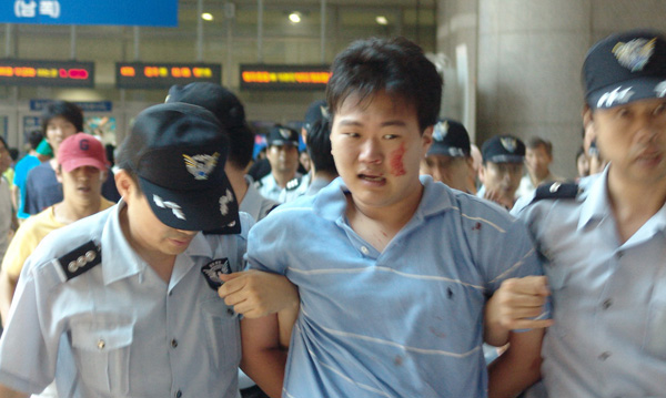 ±×·¯³ª öµµ°ø»ç´Â KTX ¿©½Â¹«¿øµéÀÌ È¨À¸·Î ³»·Á°¡Áö ¸øÇϵµ·Ï °ø¾ÈÀ» µ¿¿øÇÏ¿´´Ù. °ø¾È¿øÀÌ KTX ¿©½Â¹«¿øµéÀÇ Çà»ç¸¦ ÀúÁöÇÏÀÚ Áö³ª´ø ÇлýÀÌ À̸¦ ÁöÄѺ¸´Ù ÂüÁö ¸øÇÏ¿© Ç×ÀÇÇÏ´ø Áß °ø¾È¿ø¿¡ ÀÇÇØ ºÎ»ó±îÁö ´çÇÏ°í ¼¿ï¿ª °ø¾È½Ç¿¡ ¿¬ÇàµÇ±âµµ ÇÏ¿´´Ù.