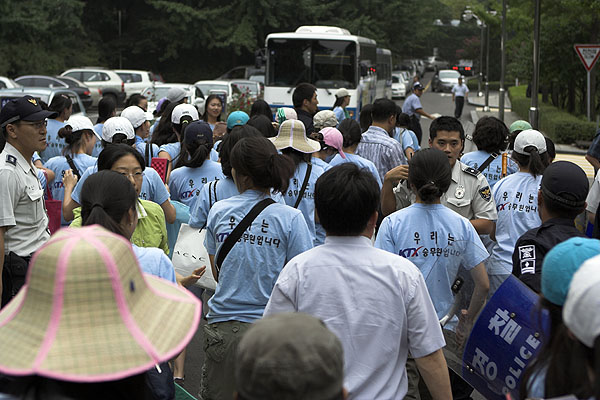 ±×·¯³ª °æÂûÀº ¹Î¿øÀ» Á¢¼öÇϰí ÀÖ´Â KTX ¿©½Â¹«¿øµé¿¡°Ô °è¼Ó ¹ÛÀ¸·Î ³ª¿Í¼ ¹Î¿øÀ» Á¢¼öÇÒ °ÍÀ» ¿ä±¸ÇÏ¿´´Ù. ÀÌ¹Ì ¹Î¿øÀ» Á¢¼ö ÁßÀÌ°í ¹Û¿¡¼ ¹Î¿øÀ» Á¢¼ö ÇÒ ¼ö ÀÖ´Â Àå¼Ò°¡ ¾ø¾ú´Ù. »Ó¸¸ ¾Æ´Ï¶ó ¹Î¿øÀ» Á¢¼öÇϱâ À§ÇÏ¿© Çö°ü¹® ¾ÈÀ¸·Î µé¾î°¡·Á´ø ÇÑ ¿©½Â¹«¿øÀ» °æÂûÀÌ ¹ÐÃÄ ³Ñ¾îÁ® ´Ù¸®¸¦ ´ÙÄ¡±âµµ ÇÏ¿´´Ù.