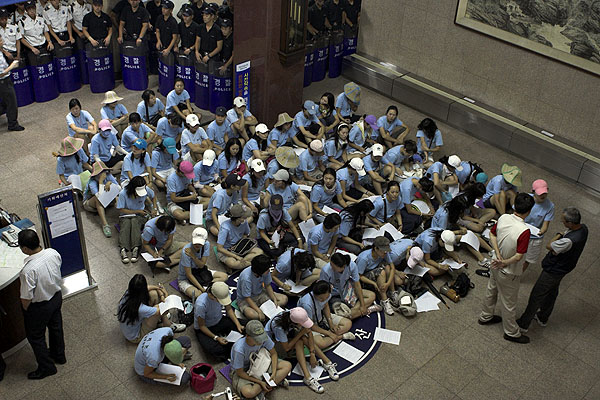 °æÂûÀÇ ÀúÁö¼±À» ¶Õ°í ·Îºñ·Î ´Þ·Á°¡´Â ½Â¹«¿øµé |