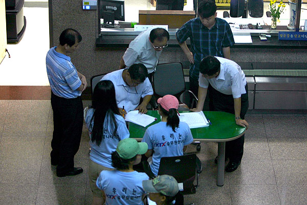 ±×·¯³ª ±âȹ¿¹»êó ¾Õ¿¡ µµÂøÇÑ KTX ¿©½Â¹«¿øÀ» ±â´Ù¸®°í ÀÖ´Â °ÍÀº ±âȹ¿¹»êó Á÷¿øÀÌ ¾Æ´Ï¶ó °æÂûÀ̾ú´Ù. KTX ¿©½Â¹«¿øµéÀº ¹Î¿øÀ» ½ÅûÇϱâ À§ÇÏ¿© ¿ÔÀ¸´Ï ¹®À» ¿°í µé¾î°¥ ¼ö ÀÖ°Ô ÇØ ´Þ¶ó°í ¿äûÇÏ¿´´Ù.