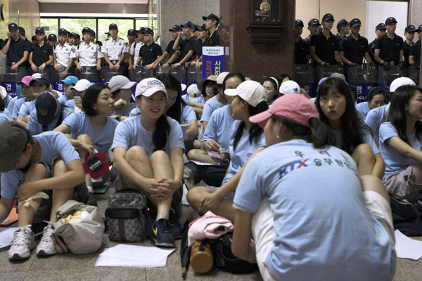 KTX ¿©½Â¹«¿øµéÀº ±âȹ¿¹»êó¿¡¼ Â÷·Ê·Î ÁøÁ¤¼¸¦ Á¢¼öÇÏ¿´´Ù. öµµ°ø»ç°¡ 8,000¿© ½Â¹«¿ø Áß À¯ÀÏÇÏ°Ô KTX ¿©½Â¹«¿ø¸¸ ¿ÜÁÖÀ§Å¹ µÇ¾ú´Ù. KTX ¿©½Â¹«¿øµéÀÇ Â÷º°´ë¿ì¿Í ÀαÇÀ¯¸°À¸·Î °íÅëÀ» ´çÇÒ ¼ö¹Û¿¡ ¾ø´Ù. ÀÌ °°Àº »çÅÂÀÇ ±Ùº»¿øÀÎÀº öµµ°ø»ç¿¡ ¿ÜÁÖÀ§Å¹À» °Á¦ÇÏ´Â ±âȹ¿¹»êóÀÇ Áöħ ¶§¹®ÀÌ´Ù. öµµ°ø»ç´Â ¡°°í¼Óöµµ °³Åë¿¡ ÇÊ¿äÇÑ ÀοøÀ» È®º¸ÇÏÁö ¸øÇÏ¿© KTX ½Â¹«¿øÀ» ¿ÜÁÖ À§Å¹Çß´Ù.¡±°í ¹àÇû´Ù.