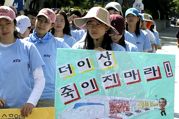 KTX ¿©½Â¹«¿øµéÀÇ Á¤´çÇÑ ÅõÀïÀÌ ¾ø¾ú´Ù¸é À̰°Àº »ç½ÇÀº ¾ÆÁ÷µµ ¹àÇôÁöÁö ¾Ê¾ÒÀ» °ÍÀÔ´Ï´Ù. ¸¸¾à KTX ¿©½Â¹«¿øµéÀÌ Ã¶µµ°ø»çÀÇ ¾ÇÂø°°Àº ź¾Ð¿¡ ¼ûÀ» Á×À̰í ÀÖ¾ú´Ù¸é ¶Ç´Ù¸¥ À§Àåµµ±Þ ³ëµ¿ÀÚµéÀÌ ´õ È®´ëµÇ¾î ½ÅÀ½Çϰí ÀÖÀ» °ÍÀÔ´Ï´Ù.