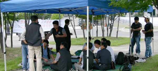 ÇÑÆí ¿îÀü ÅõÀï¿¡ ÇÔ²²ÇÑ KTX ¿©½Â¹«¿øµéÀº öµµ°ø»ç °Ç¹°¸¸ º¸¾Æµµ °áÀǰ¡ ³ÑÄ¡´Â ¸ð½ÀÀÌ´Ù. À±¼±¿Á ºÎ»ê KTX ºÎÁöºÎÀåÀº ¡°°ø»ç´Â 2003³â ´ç½Ã KTX ¿©½Â¹«¿ø ¿ÜÁÖȰ¡ ºÒ¹ýÆÄ°ßÀÎÁö ¾Æ´ÑÁö ³ëµ¿ºÎ¿¡ ÁúÀǸ¦ º¸³», ºÒ¹ýÆÄ°ßÀ̶ó°í ȸ½ÅÀ» ¹Þ°íµµ Àü¿ø ¿ÜÁÖÈ Çß°í ³ëµ¿ºÎ´Â ÀÌÁ¦¿Í¼´Â ºÒ¹ýÀÌ¾Æ´Ñ ÇÕ¹ýÆÇ°áÀ» ³»·Á KTXÁöºÎ¸¦ ¸»»ìÇÏ·Á Çϰí ÀÖ´Ù¡±¸ç ¡°Ã¶µµ°ø»ç¿¡ ¸Â¼ ¡°è°¡ ¿¹»óµÇ´Â µ¥µµ ´ç´çÇÏ°Ô ½Î¿ì´Â °ÍÀ» ¿©·¯ºÐµéÀÌ ÀÚ¶û½º·´´Ù¡±¸ç ÇÔ²² ³¡°¡Áö ÅõÀïÇÏÀÚ°í ÇÏ¿´´Ù.