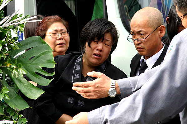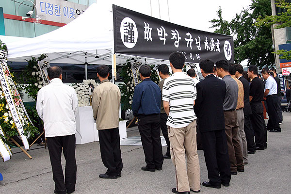 ÇåȰ¡ ³¡³ ÈÄ °íÀÎÀÇ ¸¶Áö¸· ±â´Â ±æÀ» ¹è¿õÇϱâ À§ÇÏ¿© Á¶ÇÕ¿øµéÀÌ ½ÅźÁø¿ª ¾Õ¿¡ µµ¿ÇÏ¿´´Ù. Á¶ÇÕ¿øµéÀº °í°³¸¦ ¼÷ÀÌ°í ¡°¹Úâ±Ô µ¿ÁöÀÇ ¼Ò¹ÚÇÑ ¿ôÀ½ÀÌ ±Ý¹æ »ì¾Æ³¯ °Í °°´Ù¡±¸ç ÀÌÁ¦´Â ¿µ¿øÈ÷ º¸Áö ¸ø ÇÒ °íÀÎÀ» ÇâÇÏ¿© ¹¬³äÀ» ¿Ã·È´Ù.