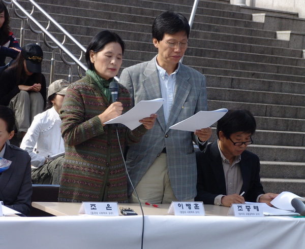 Âü¿©ÇÑ ±³¼öµéÀº ¡°KTX ¿©½Â¹«¿øµéÀÌ ÃÖ¼ÒÇÑÀÇ ±Ç¸®¸¦ Áö۱â À§ÇØ Èû°ã°Ô ½Î¿ö¿À´Â µ¿¾È ¿ì¸®´Â ħ¹¬À¸·Î ¹æ°üÇØ ¿Ô´Ù¡± ¸ç ¡°¿À´Ã ¿ì¸®´Â Áö½ÄÀÎÀ¸·Î¼ÀÇ Ã¥ÀÓÀ» Åë°¨Çϸç, ºñ·Ï ´Ê¾úÁö¸¸, »õ·Ó°Ô ½ÃÀÛÇÏ´Â ¸¶À½À¸·Î KTX ¿©½Â¹«¿øµéÀÇ Á¤´çÇÑ ¿ä±¸°¡ ÀÌ·ç¾îÁú ¶§±îÁö ¿ì¸®´Â Áö½ÄÀÎÀ¸·Î¼ ÇÒ ¼ö ÀÖ´Â °¡´ÉÇÑ ¸ðµç ¿ªÇÒÀ» ´Ù ÇÒ °Í¡± ÀÓÀ» ¹àÇû´Ù.