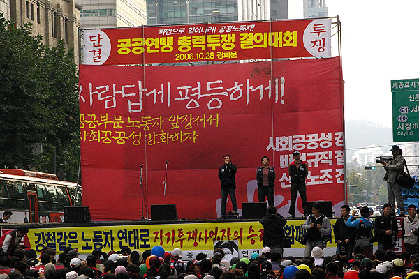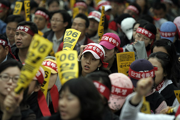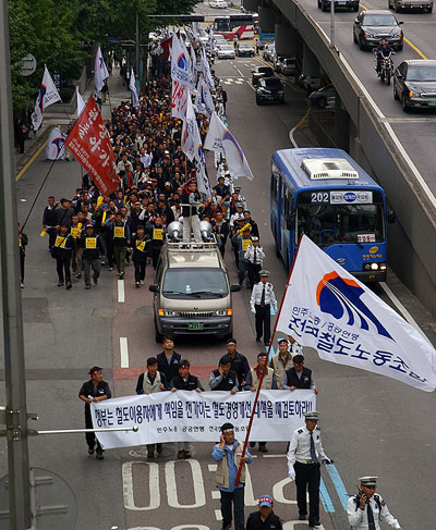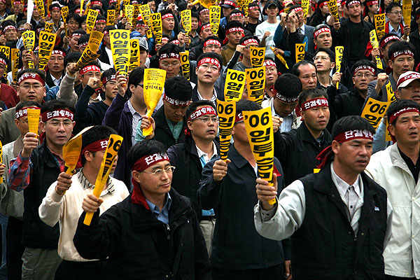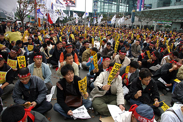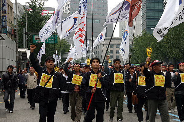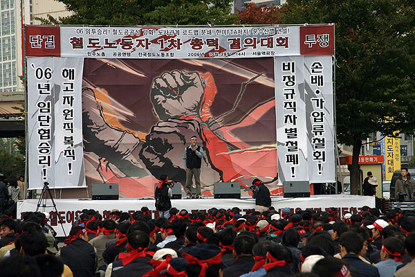 10¿ù 28ÀÏ ¼¿ï¿ª¿¡ ö³ëµ¿ÀÚÀÇ ÇÔ¼ºÀÌ ´Ù½Ã ¿ï·Á ÆÛÁö±â ½ÃÀÛÇÏ¿´´Ù. Áö³ ´Üü±³¼·ÀÌÈÄ °¡Àå Å«±Ô¸ðÀÇ Áýȸ¿´´Ù. öµµ³ëµ¿ÀÚ 3,000¿©¸íÀº ¸ðó·³ ¸¸³ª ¼·Î¸¦ È®ÀÎÇϸç ÀÓÅõ½Â¸®¿Í ÇѹÌFTA ÀúÁö, ³ë»ç°ü°è·Îµå¸Ê ºÐ¼â, ¿î¼ö»êº°³ëÁ¶ °Ç¼³À» À§ÇÑ ´ëÀåÁ¤À» ¼±Æ÷ÇÏ´Â °áÀÇ´ëȸ¸¦ °³ÃÖÇÏ¿© ¼·Î ÅõÀïÀÇ ¿±â¸¦ È®ÀÎÇÏ¿´´Ù.
