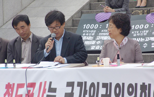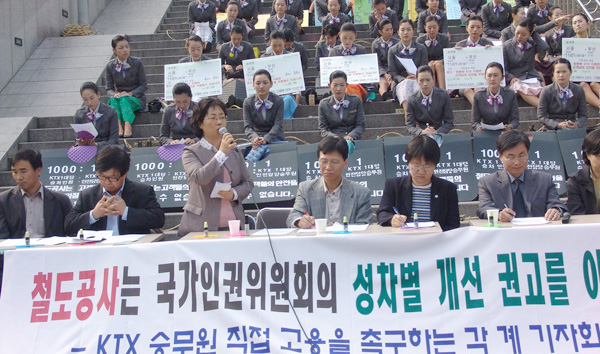 KTX ¿©½Â¹«¿øÀ» ÁöÁöÇÏ´Â ½Ã¹Î, Á¾±³, Çаè, ¿©¼º, ÆòÈ, ¹ýÁ¶°è ÀλçµéÀÌ ¸ð¿© ¼¿ï¿ª¼ KTX ¿©½Â¹«¿ø Á÷Á¢°í¿ëÀ» Ã˱¸ÇÏ´Â ±âÀÚȸ°ßÀÌ °³ÃֵǾú´Ù.