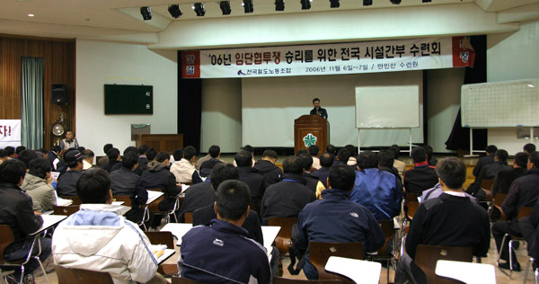 ½Ã¼³°ú Àü±âºÐ°ú¿¡¼ 06³â 11¿ù 6-7ÀÏ ¾çÀϰ£ È®´ë°£ºÎ¼ö·Ãȸ¸¦ °³ÃÖÇÏ¿´´Ù. ½Ã¼³¼ö·Ãȸ´Â ´ëÀü ¸¸ÀÎ»ê ¼ö·Ã¿ø¿¡¼ °£ºÎ ¾à 130¿©¸íÀÌ Àü±âºÐ°ú´Â ´ëÀü À¯¼ºÀ¯½ºÈ£½ºÅÚ¿¡¼ ¾à 110¿©¸íÀÇ °£ºÎµéÀÌ ¸ð¿© ÀÓÅõ½Â¸®¿Í ÇÑ¹Ì FTA ÀúÁö, ³ë»ç°ü°è·Îµå¸Ê ºÐ¼â¸¦ À§ÇÏ¿© ÇϹݱâ ÅõÀïÀ» Àü·ÂÀ» ´Ù ÇÒ °ÍÀ» °áÀÇ ÇÏ¿´´Ù.