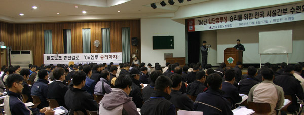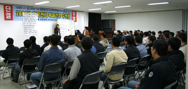 ±×¸®°í À̳¯ ½Ã¼³ °£ºÎµéÀº ÇØ°íÀÚ º¹Á÷À» ¿ä±¸ÇÏ´Â ¸®º»À» °¡½¿¿¡ ´Þ¾Ò´Ù. ±×µ¿¾È ½Ã¼³, Àü±â ºÐ¾ßÀÇ Á¶ÇÕ¿øµéÀÇ ÆÄ¾÷ Âü¿©À²ÀÌ ´Ù´Â Á÷Á¾¿¡ ºñÇÏ¿© ³·¾Ò´Ù . ±×·¯³ª ±¸Á¶Á¶Á¤Àº Àü ºÐ¾ß¿¡ °ÉÃÄ ±¤¹üÀ§ÇÏ°Ô ÁøÇàµÇ°í ÀÖ´Ù. °ø»çÀÇ °ø¼¼¿¡ ´ëÀÀÇÏ¿© ±×µ¿¾È ½Ã¼³, Àü±âºÐ¾ßÀÇ Á¶ÇÕ¿øµéÀÇ Á¶Á÷·ÂÀ» °è¼Ó È®´ëµÇ°í ÀÖ´Ù. ÀÌ·¯ÇÑ Çö½ÇÀ» ¹Ý¿µÇؼ ÀÎÁö À̹ø ½Ã¼³, Àü±â ºÐ¾ßÀÇ È®´ë°£ºÎ ¼ö·Ãȸ´Â ¿¹ÀüÀÇ ¼ö·Ãȸ º¸´Ù ´Ù¸¥ ¸ð½ÀÀ¸·Î ÁøÇàµÇ¾ú´Ù. ½Ã¼³, Àü±â È®´ë°£ºÎ¼ö·Ãȸ´Â ÇϹݱâ ÅõÀï¿¡ º¹¹«Çϱâ À§ÇÏ¿© ÀïÀÇÇàÀ§ Âù¹ÝÅõÇ¥´Â ¹°·Ð »êº°ÀüȯÀ» À§ÇÏ¿© Àü °£ºÎµéÀÇ ¿ª·®À» ¸ð¾Æ ³ª°¥ °ÍÀ» °áÀÇÇß´Ù. ±×¸®°í ½Ã¼³, Àü±â °£ºÎµéÀº 12ÀÏ ¼¿ï¿¡¼ ¿¸®´Â 2Â÷ Ãѷ°áÀÇ´ëȸ¿¡ Âü°¡ÇÏ¿© ¿î¼ö³ëµ¿ÀÚµé°ú ÇÔ²² Áýȸ¸¦ ÇÏ¿© »êº°ÀüȯÀ» À§ÇÏ¿© ÇÔ²² ½ÇÃµÇØ ³ª°¥ °ÍÀ» °áÀÇÇÏ¿´´Ù.