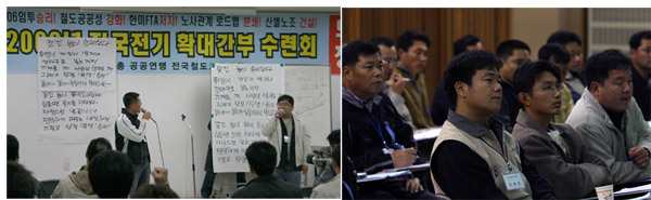 Àü±âºÐ¾ßÈ®´ë°£ºÎ ¼ö·Ãȸ¿¡¼´Â Á¤ÇØÀÎ ºÎ»ê KTX ÁöºÎÀåÀÌ Âü¼®ÇÏ¿© KTX ÅõÀï»óȲÀ» ¼³¸íÇÏ¿´´Ù. Á¤ ÁöºÎÀåÀº "KTX ¿©½Â¹«¿øµéÀÌ ¾î·Æ°Ô ÅõÀïÇϰí ÀÖÁö¸¸ ¿Ç¹Ù¸§ÀÌ ½Â¸®ÇÑ´Ù´Â Æò¹üÇÑ Áø¸®¿Í öµµµ¿ÁöµéÀ» ¹Ï°í ÈûÂ÷°Ô ÅõÀïÇϰí ÀÖ´Ù"°í ¹àÇû´Ù. ÀÌ¾î °Àǰ¡ ³¡³ª°í °£´ÜÇÑ À²µ¿°ú ³ë·¡¸¦ ¹è¿ì´Â ½Ã°£µµ °¡Á³´Ù. Àü±â °£ºÎµéÀº ¸ðó·³ ¸¹Àº °£ºÎµéÀÌ ¸ð¿© À²µ¿À» ¹è¿ì°í Àü±âºÐ¾ß¿¡ ¹Ð¾î´ÚÄ¡´Â ÁÖÀçÅëÆóÇÕ À» À§ÇÑ °ø»çÃøÀÇ °ø¼¼¿¡¼ Àá½Ã³ª¸¶ ½Ã¸§À» ÀØÀ» ¼ö ÀÖ¾ú´Ù.