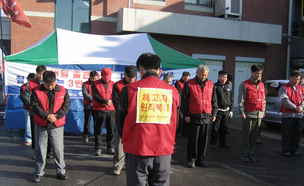 4¿ù 1ÀÏ Ã¶µµ³ë»ç´Â ÇØ°íÀÚ º¹Á÷¿¡ ÇÕÀÇÇß½À´Ï´Ù. ±×·¯³ª Áö±Ý öµµ°ø»ç´Â ÇØ°íÀÚ º¹Á÷ ¾à¼ÓÀ» ÁöŰÁö ¾Ê°í ÀÖ½À´Ï´Ù. Àӱݱ³¼· ¼®»ó¿¡¼´Â ÇØ°íÀÚ º¹Á÷À» À§Çؼ± »ç½Ç»ó ³ëµ¿Á¶ÇÕÀ» Æ÷±âÇÒ °ÍÀ» ¼±¾ðÇ϶ó°í ÇÕ´Ï´Ù.