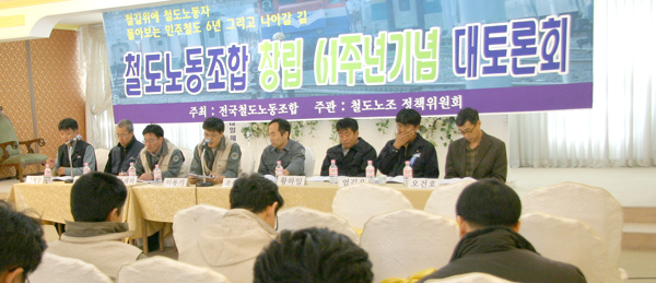 ÀÌ·¯ÇÑ ¿¬Àå¼±¿¡¼ ºñÁ¤±ÔÁ÷ ½Î¿òµµ Áß¿äÇÏ´Ù. ±×µ¿¾È öµµ³ëµ¿ÀÚµéÀÌ °ø°øÃ¶µµ¸¦ ÁÖÀåÇÏ°í ¼Ò¿ÜµÈ °èÃþÀÇ ¿Â÷ÀÌ¿ë±ÇÀ» È®º¸Çϱâ À§ÇÏ¿© ³ë·ÂÇØ ¿Ô´Ù. ±×¸®°í ÀÏÁ¤ºÎºÐ ¿©·ÐÈÇÏ°í ¼º°ú¸¦ ¸¸µé¾î ³»¾ú´Ù. ÀÌ·¯ÇÑ °ø°£À» ´õ¿í È®´ëÇÏ¿© ºñÁ¤±ÔÁ÷ ³ëµ¿ÀÚ¹®Á¦¸¦ ÇÔ²² °øÀ¯È ½ÃÄÑ ³ª°£´Ù¸é Á¤ºÎ¿Í ÀÚº»ÀÌ Åº¾ÐÀ» ÇÑ´Ù ÇØµµ ±×µ¿¾È öµµ³ëµ¿ÀÚµéÀÌ ÇÔ²²ÇÑ »ç¶÷µéÀº °è¼Ó ÇÔ²² ÇÒ °ÍÀÌ°í ¿¬´ë¼¼·Âµéµµ ´Ã¾î³¯ °ÍÀÌ´Ù. ÀÌÁ¦ öµµ³ëµ¿ÀÚµéÀº Áö±ÝÀÇ ÀÇÁ¦¿Í »õ·Î¿î ÀÇÁ¦¸¦ ²÷ÀÓ¾øÀÌ ¸¸µé¾î ³»¸ç öµµÀÇ ¹ßÀüÀÌ ±¸Á¶Á¶Á¤À» ¸·¾Æ³»´Â °ø¼¼ÀûÀÎ ÅõÀïÀ̶ó´Â °ÍÀ» ¿°µÎ¿¡ µÎ¾î¾ß ÇÒ °ÍÀÌ´Ù, ¸¶Áö¸·À¸·Î ±×µ¿¾È ÇØ¿Â öµµÀÇ °ø°ø¼ºÀ» °è¼Ó ÁöÄѳª°¡±æ ¹Ù¶ó¸ç öµµ³ëµ¿ÀÚµéÀÌ ¾ÈÀüÇÏ°Ô ÀÏ Çϴ öµµ°¡ µÇ¾úÀ¸¸é ÇÑ´Ù. ÃÊ´ëÇØ ÁÖ¾î¼ °¨»çÇÏ´Ù.