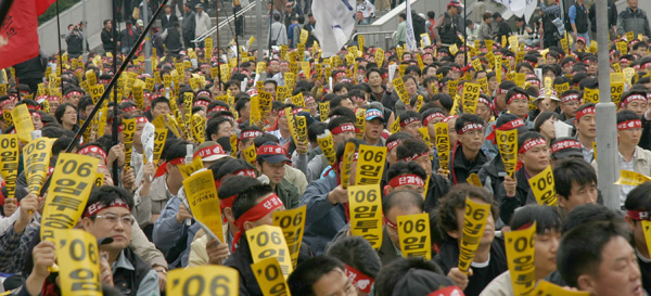 ÀïÀÇÇàÀ§ Âù¹ÝÅõÇ¥¿Í »êº°ÀüȯÀ» À§ÇÑ Á¶ÇÕ¿øÃÑȸ°¡ ¸¶¹«¸® µÇ¾ú´Ù. 24,822¸íÀÇ Á¶ÇÕ¿ø Áß 22,962¸í(ÅõÇ¥À² 92.51%)ÀÌ ÅõÇ¥¿¡ Âü¿©ÇØ ÀïÀÇÇàÀ§ Âù¹ÝÅõÇ¥ÀÇ °æ¿ì 13,754¸íÀÇ Âù¼º(59.89% ÀçÀû´ëºñ 55.41%)À¸·Î °¡°áÀÌ µÇ¾ú´Ù. ¶Ç »ê¾÷º° ³ëÁ¶ Àüȯ ÅõÇ¥¿¡´Â 15,698¸í(68.37%)ÀÌ Âù¼ºÇÏ¿´´Ù.