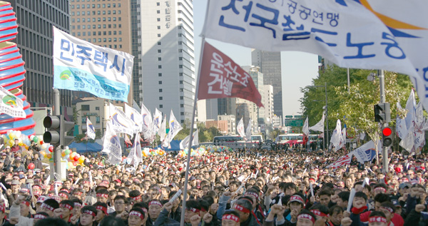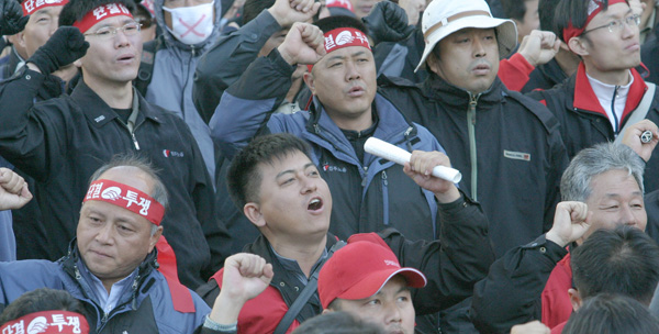 ÀÌÁ¦ ±â¾÷º°³ëÁ¶ÀÇ ÀÛÀº ¿ïŸ¸®¸¦ ³Ñ¾î »õ·Î¿î ³ëµ¿¿îµ¿ÀÇ ±âdzÀÌ ¸¸µå´Â ½Ã´ë¸¦ öµµ³ëµ¿ÀÚµéÀÌ ¿¾î°¡°í ÀÖ´Ù. öµµ³ëµ¿ÀÚµéÀº '³ëµ¿ÀÚ´Â Çϳª!'¶ó´Â ½½·Î°ÇÀ¸·Î Á¤±ÔÁ÷, ºñÁ¤±ÔÁ÷ Â÷º°ÀÇ º®À» Çã¹°À» °ÍÀÌ´Ù. ÇϹݱâ ÅõÀïÀ» ½Â¸®°í À̲ø±â À§ÇÏ¿© ´Ù¾çÇÑ ÇöÀåÅõÀïÀ» ÁغñÇÏ¿© 22ÀÏ ¹ÎÁß Ãѱȱâ´ëȸ¸¦ ¼º»ç½Ãų °ÍÀÌ´Ù.
