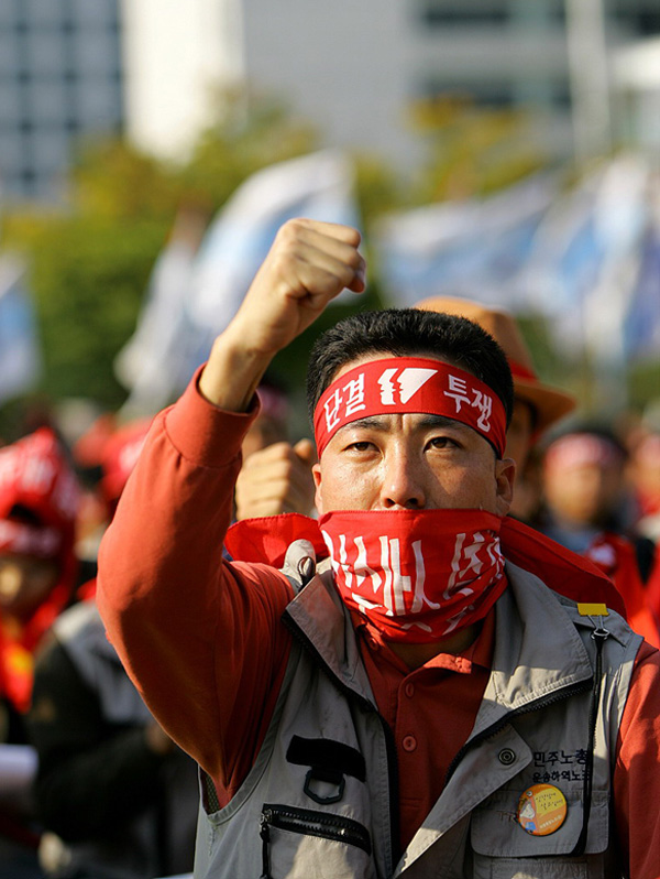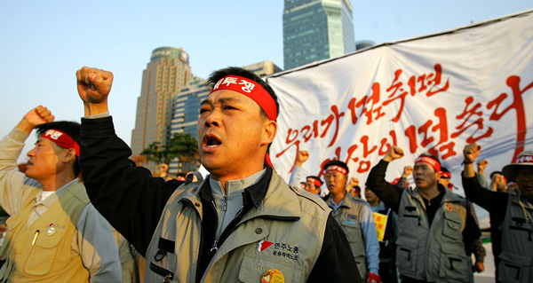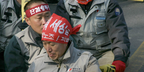 ȹ°³ëµ¿ÀÚÀÇ ÆÄ¾÷À» µÇµ¹¾Æº¸¸é öµµ³ëµ¿ÀÚÀÇ ÆÄ¾÷À» ź¾ÐÇÏ´Â ¹æ½Ä°ú À¯»çÇÏ´Ù. öµµ³ëµ¿ÀÚ°¡ ÆÄ¾÷ÇÏ¸é ±³Åë´ë¶õÀ̰í ȹ°³ëµ¿ÀÚÀÇ ÆÄ¾÷À» ¹°·ù´ë¶õÀ̶ó¸ç È£µé°©µé ¶°´Â °ÍÀÌ ³Ê¹« Èí»çÇÏ´Ù. ¶ÇÇÑ º¹±ÍÀÚ À¯µµ¸¦ À§ÇÏ¿© ÆÄ¾÷ÀÇ ±Ô¸ð¸¦ Ãà¼ÒÇÏ¸é¼ ÇÑÆíÀ¸·Î´Â ³ëÁ¶»ç¹«½Ç ¾Ð¼ö¼ö»ö µîÀ» ÅëÇÏ¿© ÁöµµºÎ¸¦ ¾Ð¹ÚÇϰí Á¶ÇÕ¿øµé°ú ºÐ¸®Çϰí ÀÖ´Â °ÍÀÌ Ã¶³ëµ¿ÀÚµéÀÌ ÆÄ¾÷ ¶§ °æÇèÇÏ¿´´ø °ÍÀ» ȹ°³ëµ¿ÀÚµéÀÌ Áö±Ý µ¹ÆÄÇϰí ÀÖ´Ù.
