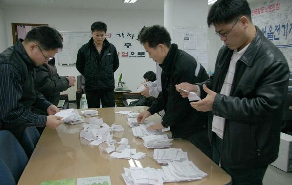 Àü±¹¿¡ °ÉÃÄ 11¿ù 6ÀϺÎÅÍ 8ÀϱîÁö Àü±¹¿¡¼ ÅõÇ¥°¡ ½Ç½ÃµÇ¾ú´Ù. ÅõÇ¥´Â ¿©´À ¶§ º¸´Ùµµ Â÷ºÐÇÏ°Ô ¹«¸®¾øÀÌ ÁøÇàµÇ¾ú´Ù. ÅõÇ¥´Â ÀüüÁ¶ÇÕ¿ø 24,937¸í(ÅõÇ¥À² : 86.19 %) ÀÌ ÅõÇ¥¿¡ Âü¿©ÇÏ¿´´Ù. 15,283¸íÀÌ Âù¼ºÇÏ¿© 71.10 %¸¦ ±â·ÏÇÏ°Ô µÇ¾ú´Ù. ¹Ý´ë´Â 5,991¸íÀÌ ¹Ý´ëÇÏ°í ±â±Ç 3.343¸í, ¹«È¿´Â 220¸íÀ¸·Î 5°³¿ù°£ ÁøÇàµÈ ÀÓ±ÝÇù»óÀÇ ±ä ÀåÁ¤ÀÌ ¸¶¹«¸® µÇ¾ú´Ù.