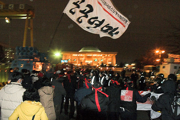 ±¹È¸ ¾Õ¿¡¼´Â ¼ö¸¹Àº ³ëµ¿ÀÚµéÀÌ ³ë»ç°ü°è ·Îµå¸Ê¹ý ȯ³ëÀ§ Åë°ú ÀúÁö¸¦ À§ÇÏ¿© ¸ð¿©µé¾ú´Ù. ¹ÎÁÖ³ëÃÑÀº ¾îÁ¦ºÎÅÍ °£ºÎ´ë¿À Áß½ÉÀ¸·Î 1000¿© ¸íÀÌ ±¹È¸¾Õ¿¡¼ ³ë¼÷ÅõÀïÀ» ¹úÀÌ´Â µî ±¹È¸ ÀÏÁ¤¿¡ ¸ÂÃç ÅõÀïÀ» ÁøÇàÇÏ´ø Áß À̾ú´Ù.