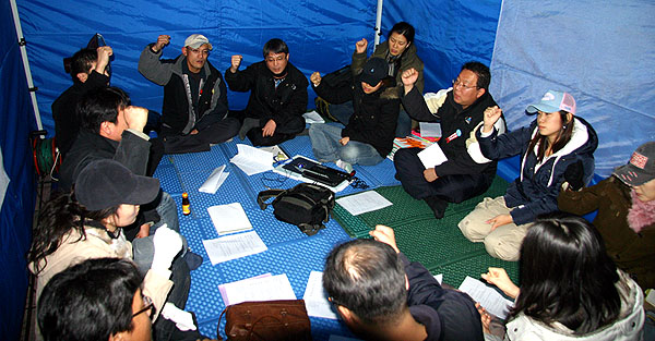 ±âÀÚȸ°ßÀ» ¸¶Ä£ »õ¸¶À»È£ ½Â¹«¿øµéÀº ±âÀÚȸ°ß¿¡ Âü¼®ÇÑ KTX½Â¹«¿øµé°ú ÇÔ²² ¼¿ï¿ª ´ëÇսǰú ¿Â÷¿¡¼ ½Ã¹Îµé¿¡°Ô Á¤ºÎÅõÀÚ±â°üÀÇ ³ëµ¿ÀÚ Åº¾Ð ¸¸ÇàÀ» ¾Ë¸®´Â ¼±Àü¹°À» ¹èÆ÷Çϰí ÀÌÈÄ ÅõÀïÀÏÁ¤°ú ¹æÇâ¿¡ ´ëÇØ ³íÀÇÇϱâ À§ÇØ Ã¶µµ³ëÁ¶ ȸÀǽǿ¡ ¸ð¿© ÃÑȸ¸¦ ÁøÇàÇÏ¿´´Ù.